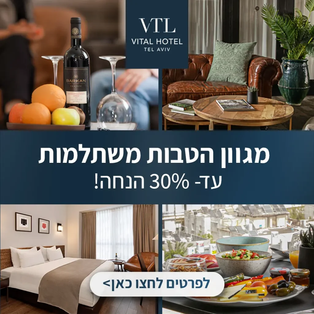 מלון ויטל מזמין אתכם לחוות את תל אביב בשיא עוצמתה. להתארח במלון עסקים מפנק ולשלב את קסמה של תל אביב בדרך יוקרתית ומפנקת. המלון ממוקם בליבה הפועם של תל אביב ומציע מתחמי תרבות בשעות היום והערב, אטרקציות בילוי תוססות וחוויה קולינרית משובחת.